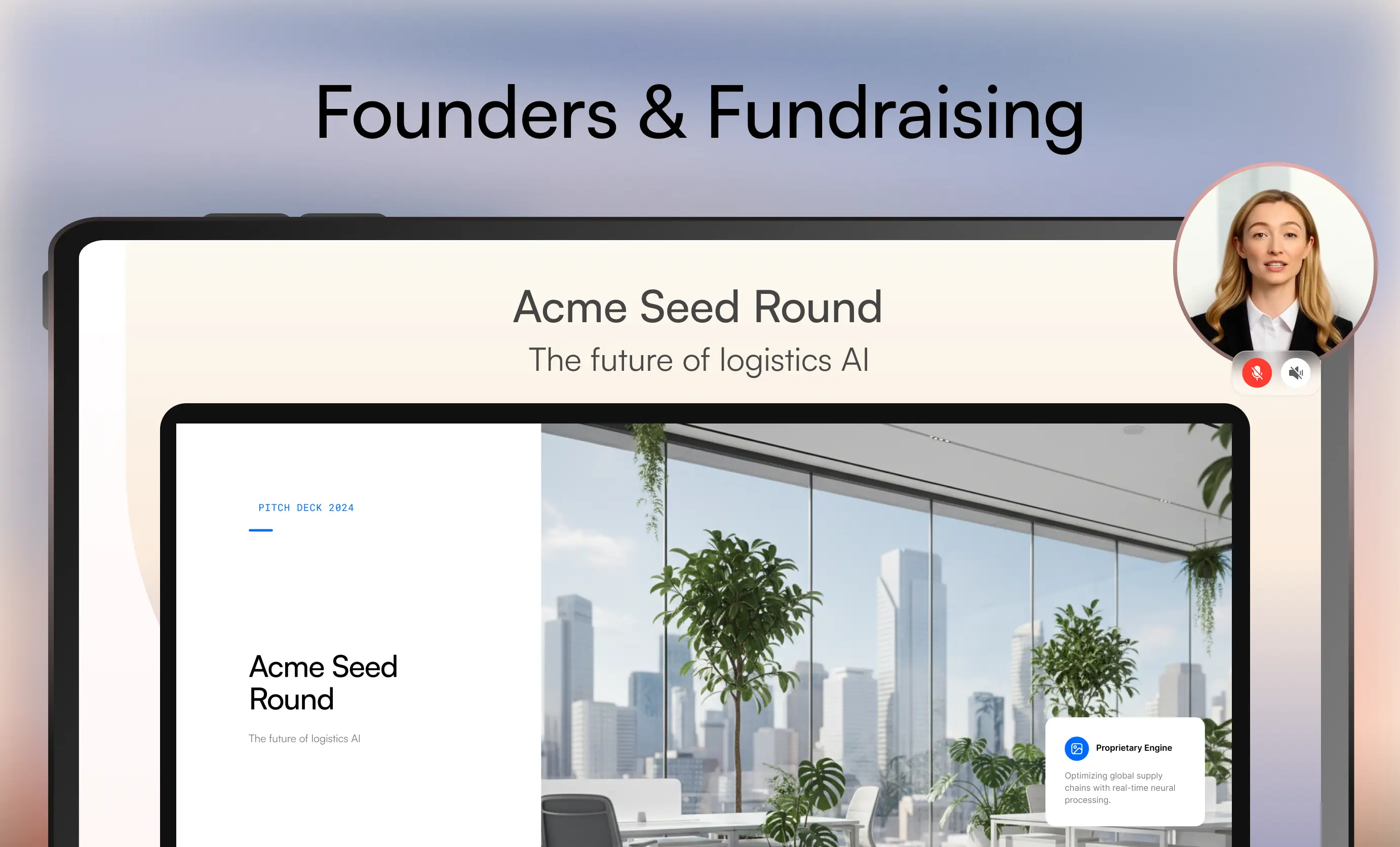 Your avatar explains your pitch like you would. Investors explore metrics, ask about economics & signal interest through behavior.
